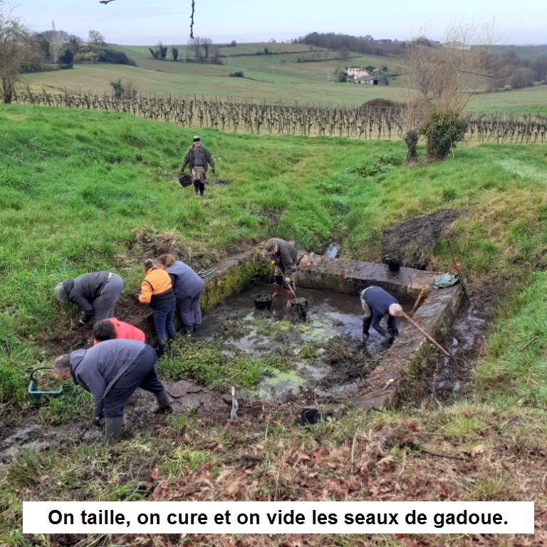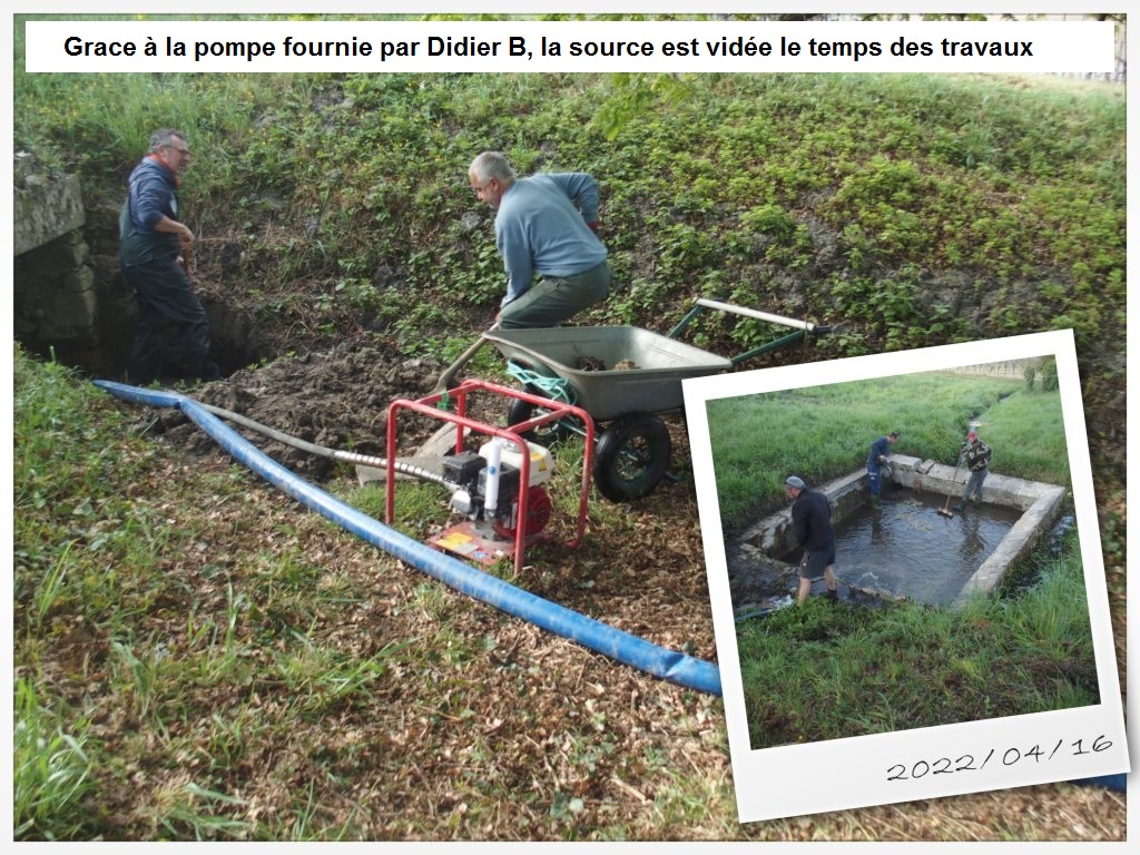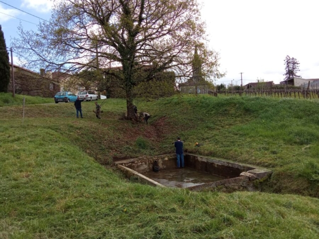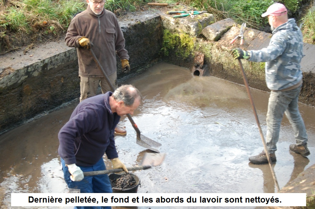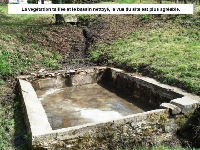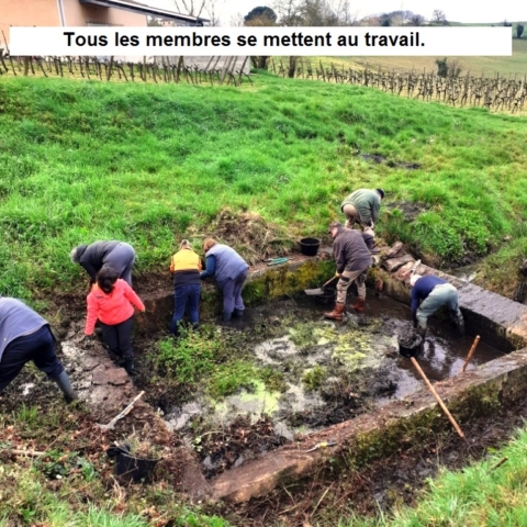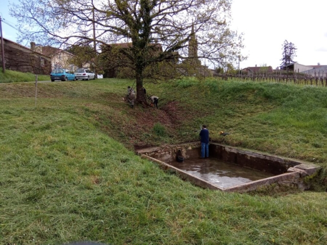 Il a fallu dégager le tour du lavoir, nettoyer l’accès à la source et le vider.