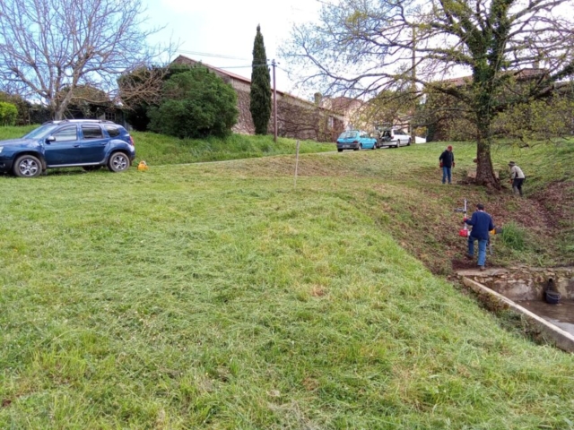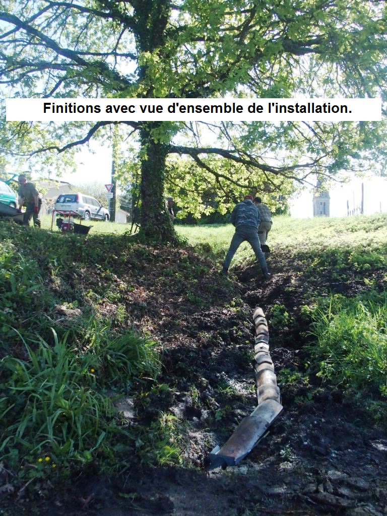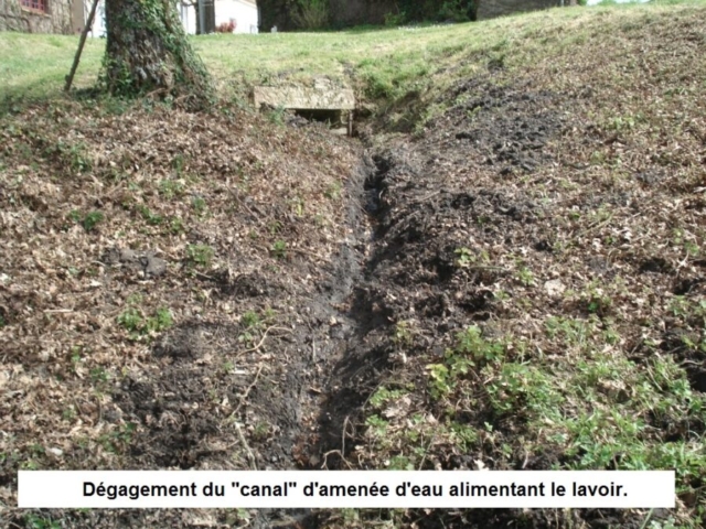 Maintenant que la source est sécurisée et le lavoir vide et propre, il est temps de revoir l’écoulement de l’eau vers le lavoir.